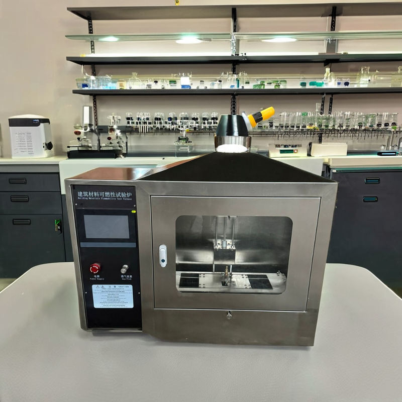Ignitability test, also called single-flame source test. Test apparatus corresponds to standard EN ISO 11925-2. Test results of the building structure can be classified according to standard 13501-1.